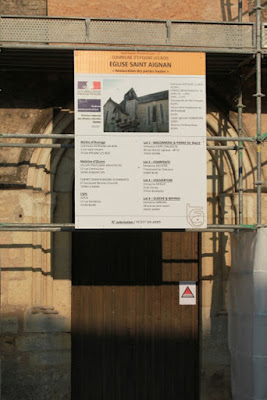The 11th Century church in the centre of Epeigné-les-Bois is undergoing renovation. L'entreprise Merlot started work on 4th January 2016. These photos were taken yesterday (12th March). By now the slates have been removed as well as much of the roof timbers, while the bell has been sent to Germany to be repaired.