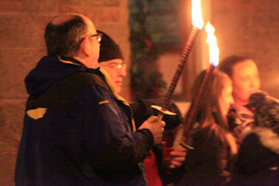 The two pipers – Scott Duncan and Alex Maclean – meeting in the middle