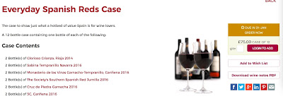 We have chosen a couple of mixed cases: a dozen whites from South West France (2 of each) and a dozen Everyday Spanish reds (again 2 of each)